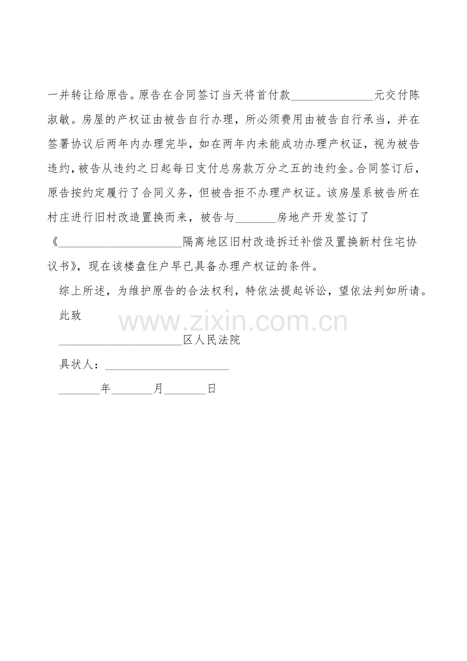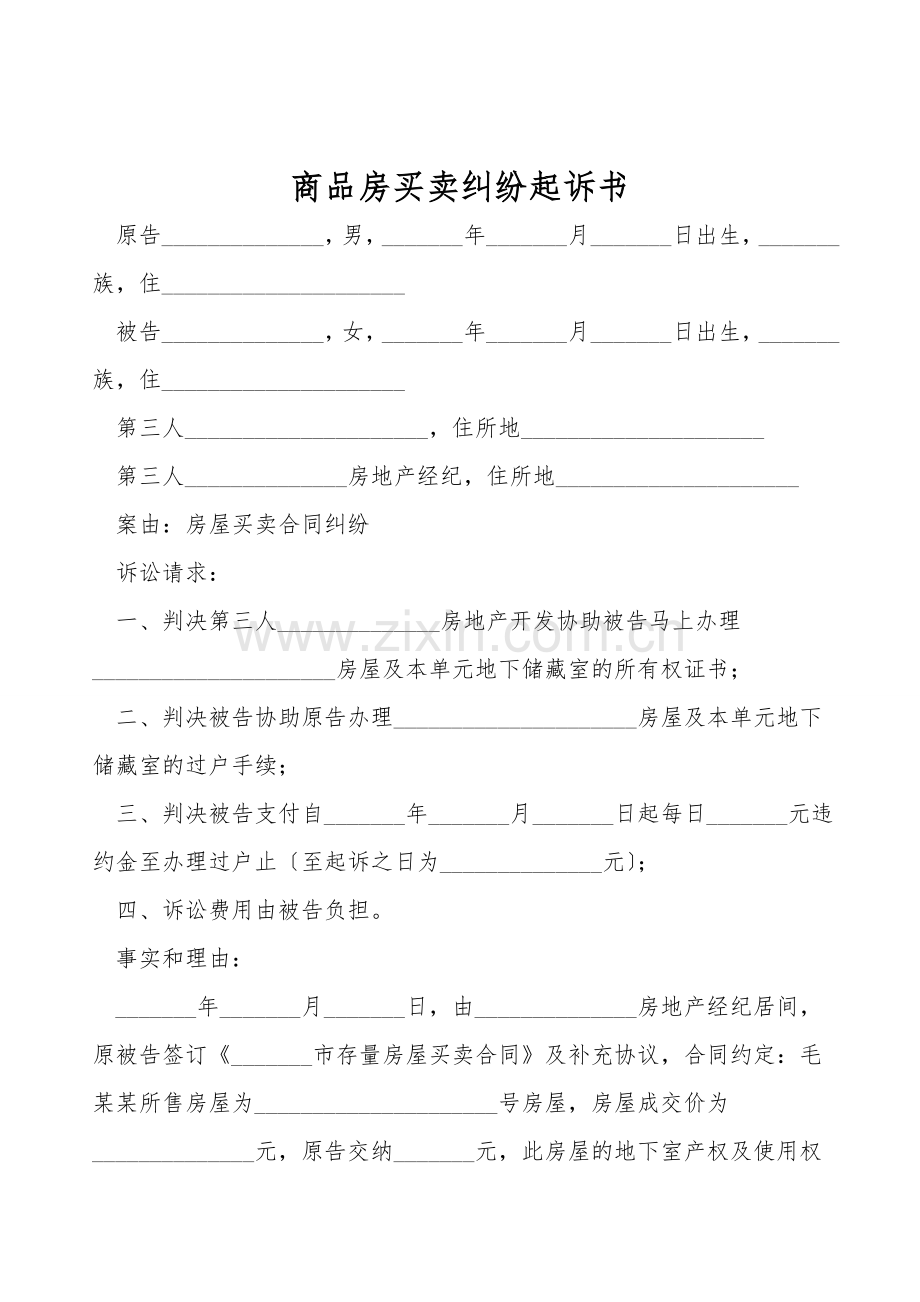 商品房买卖纠纷起诉书