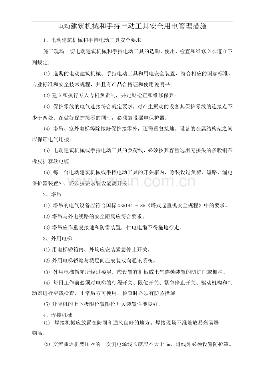电动建筑机械和手持电动工具安全用电管理措施