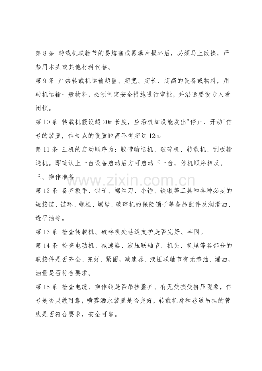第22条 转载机、破碎机运转以后,司机要注意观察运行状态,监听运转声音,发现异常及时停机检查处理。