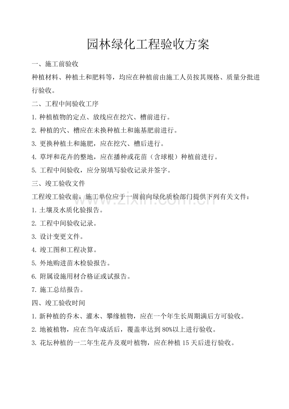 1. 新种植的乔木、灌木、攀缘植物,应在一个年生长周期满后方可验收。