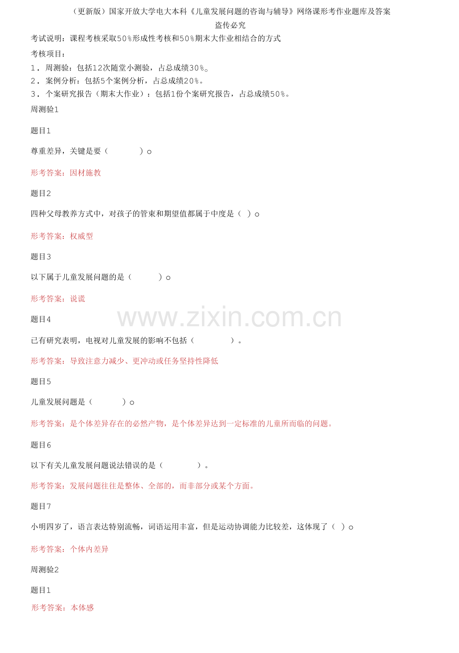(更新版)国家开放大学电大本科《儿童发展问题的咨询与辅导》网络课形考作业题库及答案