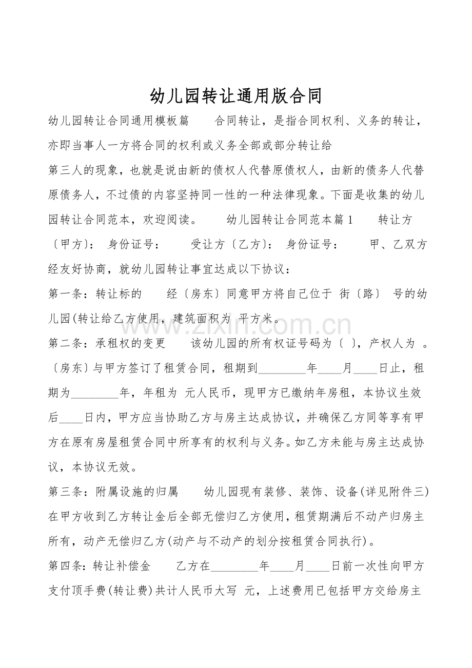 幼儿园转让通用版合同
