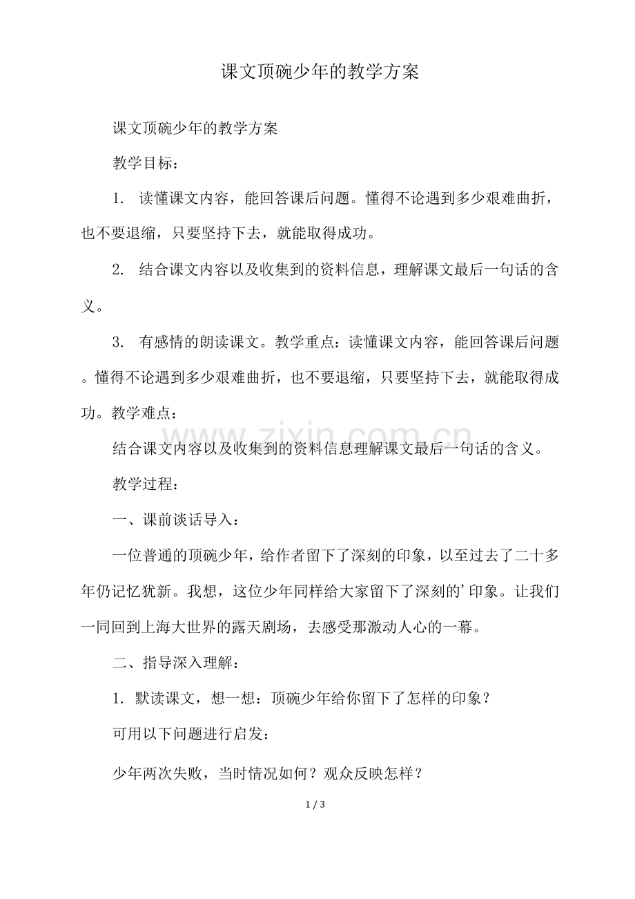课文顶碗少年的教学方案