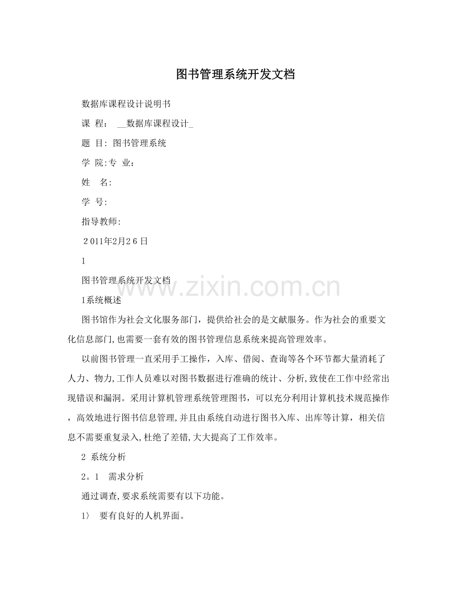 数据库课程设计说明书
