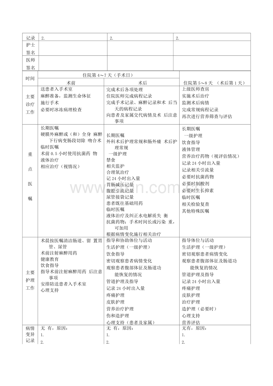 住院日期:年—月—日 出院日期:年 月—日 标准住院日:9〜18天