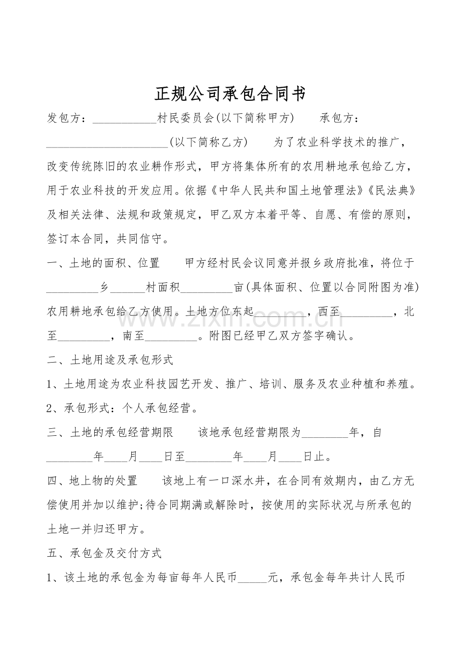 正规公司承包合同书