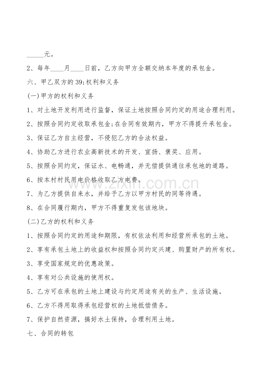 6、乙方不得用取得承包经营权的土地抵偿债务。