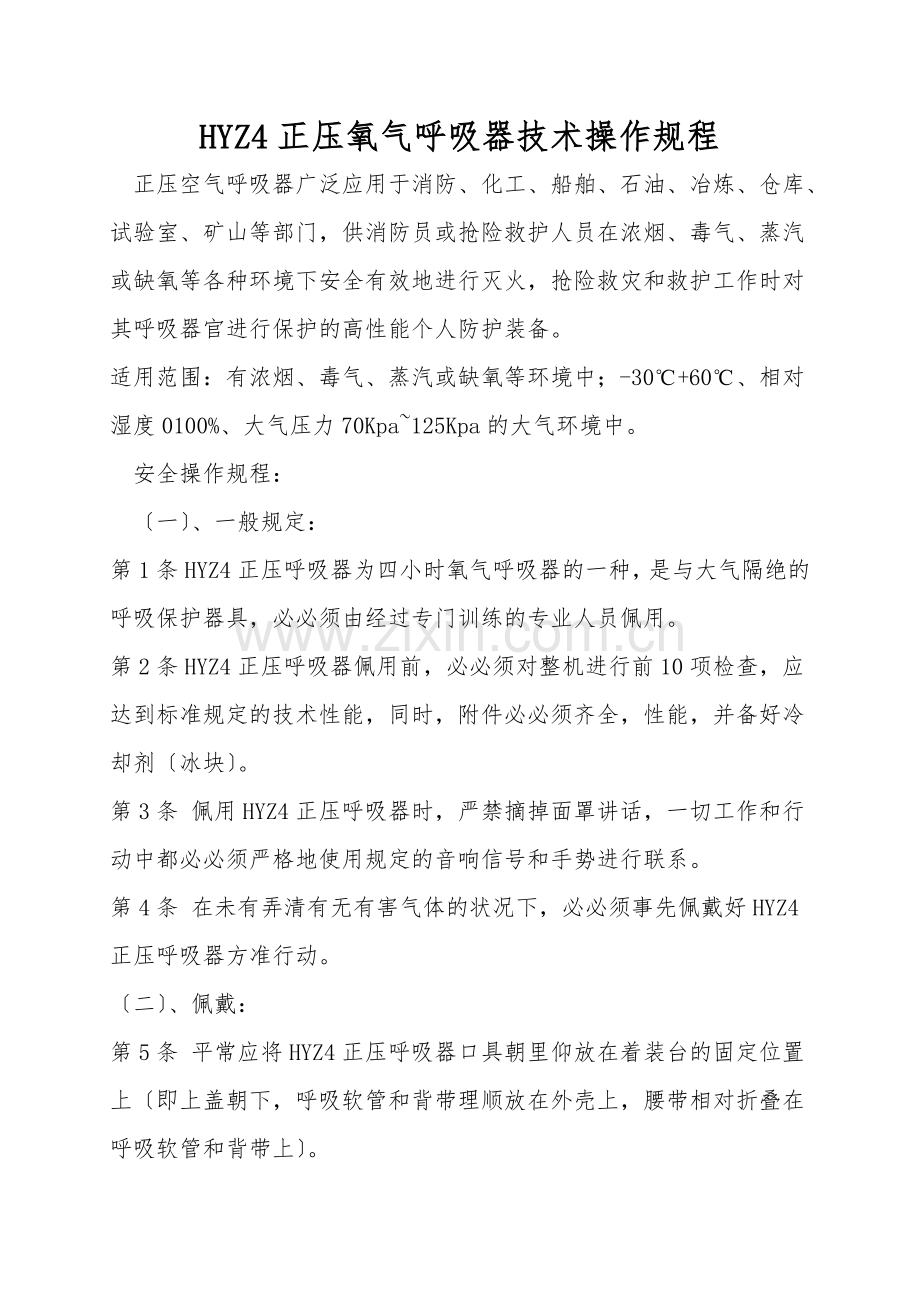 第1条HYZ4正压呼吸器为四小时氧气呼吸器的一种,是与大气隔绝的呼吸保护器具,必必须由经过专门训练的专业人员佩用。
