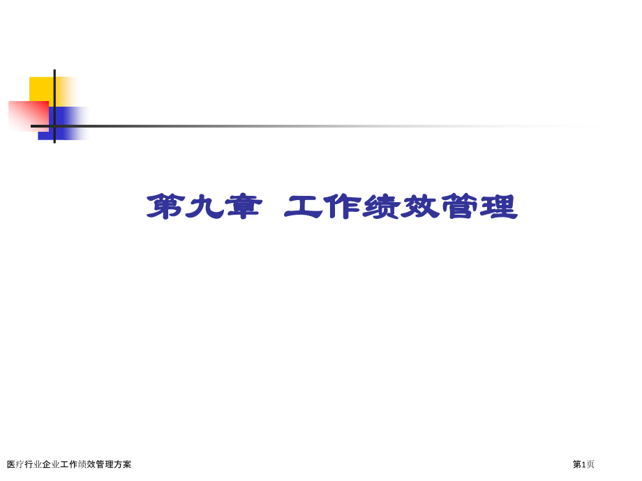 Click to edit Master title style,Click to edit Master text styles,Second level,Third level,Fourth level,Fifth level,*,*,单击此处编辑母版标题样式,单击此处编辑母版文本样式,第二级,第三级,第四级,第五级,*,*,单击此处编辑母版标题样式,单击此处编辑母版文本样式,第二级,第三级,第四级,第五级,*,*,第九章 工作绩效管理,医疗行业企业工作绩效管理方案,第1页,本章主要内容,为何要进行绩效评定,工作绩效评价步骤,谁来进行工作绩效评定,绩效评定方法,可能会出现问题及对应处理方法,工作绩效面临挑战,战略性绩效评定(补充资料),资料,医疗行业企业工作绩效管理方案,第2页,一、为何要进行绩效评定,“we can change a lot of people just a little and we believe that overall organizational effectiveness will be improved”。,医疗行业企业工作绩效管理方案,第3页,(一)什么是绩效评定Performance Appraisal(PA),对员工工作行为评定过程,参考一定标准,并把评定信息和员工进行沟通。,The process of evaluating how well employees perform their jobs when compared to a set of standards,and then communicating the information to employees.,Informal Appraisal(also called coaching),Day-to-day contacts,largely undocumented,Systematic Appraisal,Formal contact at regular time intervals,usually documented,医疗行业企业工作绩效管理方案,第4页,(二)绩效评定用途,Giving Performance Feedback,Administering Wages and Salaries,Identifying Strengths and Weaknesses,PerformanceAppraisal,医疗行业企业工作绩效管理方案,第5页,与员工沟通管理层目标和目标。,强化管理层期望,在管理层和下属员工明确组织目标和个人目标后,管理者职责就是经过反馈过程,怎样和绩效和所提出期望目标及标准相匹配。,激励员工改进绩效,是组织效率提升主要伎俩。,经过对员工工作表现评定,寻找和期望目标和标准差距,提出反馈或建设性提议。,是其它人力资源管理活动客观依据。,经过对员工工作能力和工作业绩全方面考查,了解和必定其素质,以作为工资、奖惩晋升、培训等活动客观依据。,营造组织公平气氛,组织公正性是员工工作生活质量主要影响原因,绩效评定公平地分配了组织资源,对员工工作态度(满意感等)是促进作用。,医疗行业企业工作绩效管理方案,第6页,(三)PA可能面临角色冲突,医疗行业企业工作绩效管理方案,第7页,二、谁来进行工作绩效评定,Supervisors who rate their subordinates,Employees who rate their supervisors,Team members who rate each other,Outside sources,Employees self-appraisal,Multisource(360,feedback)appraisal,医疗行业企业工作绩效管理方案,第8页,Multisource Appraisal,医疗行业企业工作绩效管理方案,第9页,三、工作绩效评价步骤,界定工作,本身要,求,评价实际,工作绩效,提供反馈,绩效面谈,医疗行业企业工作绩效管理方案,第10页,界定工作本身要求,很多工作是在工作任务分析时候就完成了。同时确保管理者和下属之间对工作职责和工作标准方面达成共识。,评价实际工作绩效,将下属员工实际工作绩效和第一个步骤中所确定工作标准进行比较,了解之间差距。,提供反馈,提供一次或屡次反馈,由管理者和下属就他们绩效和进步情况进行讨论,指出差距所在以及改进方案。,医疗行业企业工作绩效管理方案,第11页,四、工作绩效信息,(Types of Performance Information),JobPerformance?,Trait-basedInformation,Behavior-basedInformation,Results-basedInformation,医疗行业企业工作绩效管理方案,第12页,五、绩效评定方法,医疗行业企业工作绩效管理方案,第13页,(一)图尺度评价法(graphic rating scale),是最简单和利用最普遍工作绩效评价技术之一。它列举出一些组织所期望绩效组成要素(质量,数量,或个人特征等),还列举出跨越范围很宽工作绩效登记(从“不令人满意”到“非常优异”)。,在评价时,首先针对每个员工对每个要素打分,然后将全部分值相加,得到最终评价结果。,当然,许多组织并不但仅停留在普通性工作绩效原因上,他们还将这些作为评价标准工作职责进行深入分解,形成更详细和有针对性工作绩效评价表。,医疗行业企业工作绩效管理方案,第14页,(二)交替排序法(alternative ranking method):依据一些工作绩效评价要素将员工从绩效最好人到绩效最差人进行排序。,操作:,(1)将需要进行评价全部下属人员名单列举出来,(2)在每种要素上,挑出表现最好和最差员工,(3)在剩下员工中挑出最好和最差,以这类推,最大缺点:无法给出一个综合指标,下表是交替排序法绩效评价等级,医疗行业企业工作绩效管理方案,第15页,(三)配对比较法(paired comparison method),详细做法:将每一位员工按照全部评价要素(“工作数量”或“工作质量”等)与全部其它员工进行比较。,医疗行业企业工作绩效管理方案,第16页,(,四)强制分布法(forced distribution method),使用这种方法意味着要提前确定准备按照一个什么样百分比将被评分者分别分布到每个工作绩效等级中去。比如,能够按照下面百分比标准确定员工工作绩效分布情况:,强制分布法特色:原来使用图尺度评价法时候,有可能将每个员工评分都打得很高,不能表达差异性,使用强制分布法是为了在员工中形成更大绩效差异,比较轻易挖掘出尤其优异人来。当另首先,有可能在某个部门中,有某类等级确实无人适当问题,这时是按照员工绝对绩效类评价,还是依然对他们相对绩效评价就引发大家争论。,医疗行业企业工作绩效管理方案,第17页,Forced Distribution on a Bell-Shaped Curve,医疗行业企