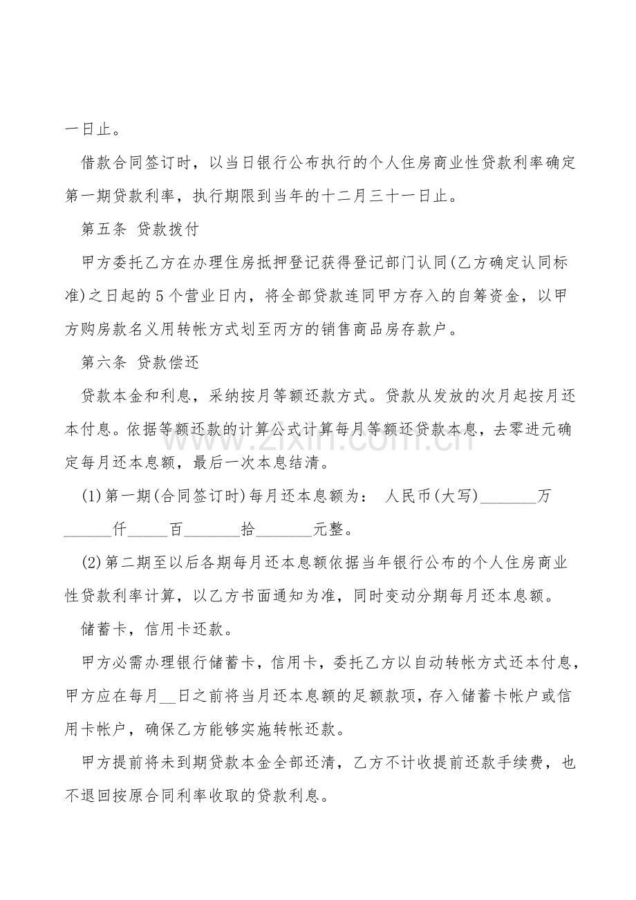(2)第二期至以后各期每月还本息额依据当年银行公布的个人住房商业性贷款利率计算,以乙方书面通知为准,同时变动分期每月还本息额。