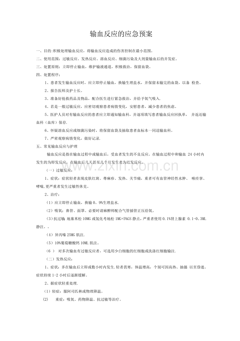 一、目的:积极处理输血反应,将输血反应造成的伤害控制在最小范围。