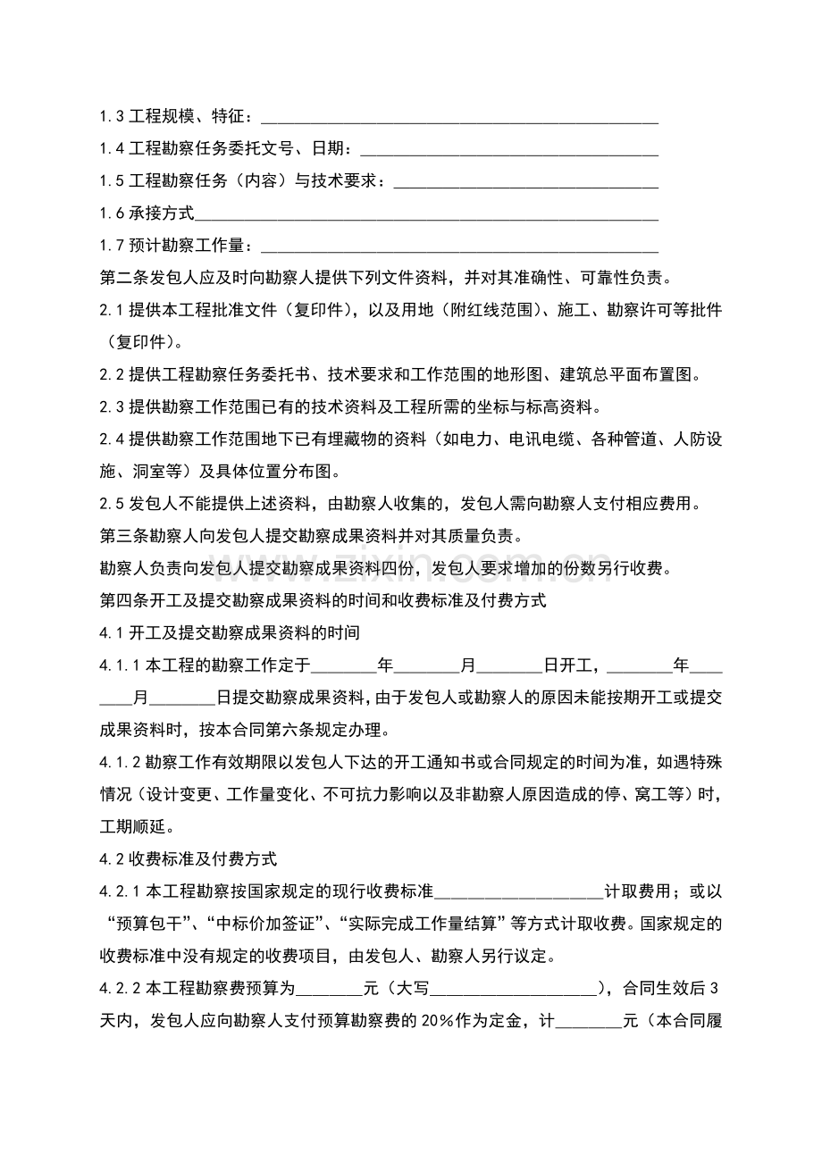 5.1.1发包人委托任务时,必须以书面形式向勘察人明确勘察任务及技术要求,并按第二条规定提供文件资料。