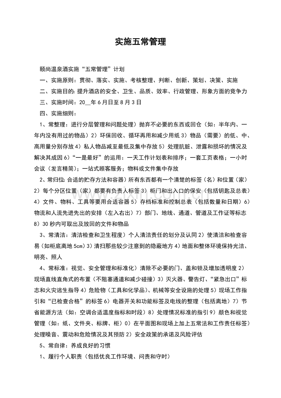 1、六月份第一周,根据细则要求各部门制定“常整理”、“常清洁”实施计划(见附表),交至质检部。六月份第二周至第四周,落实实施,质检部根据各部门上报计划进行跟进检查