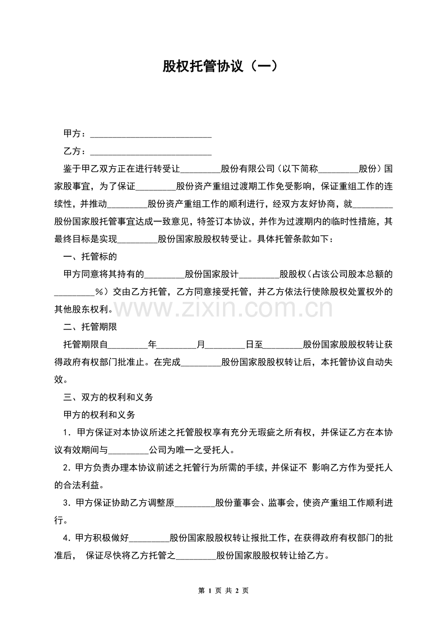 股权托管协议(一)