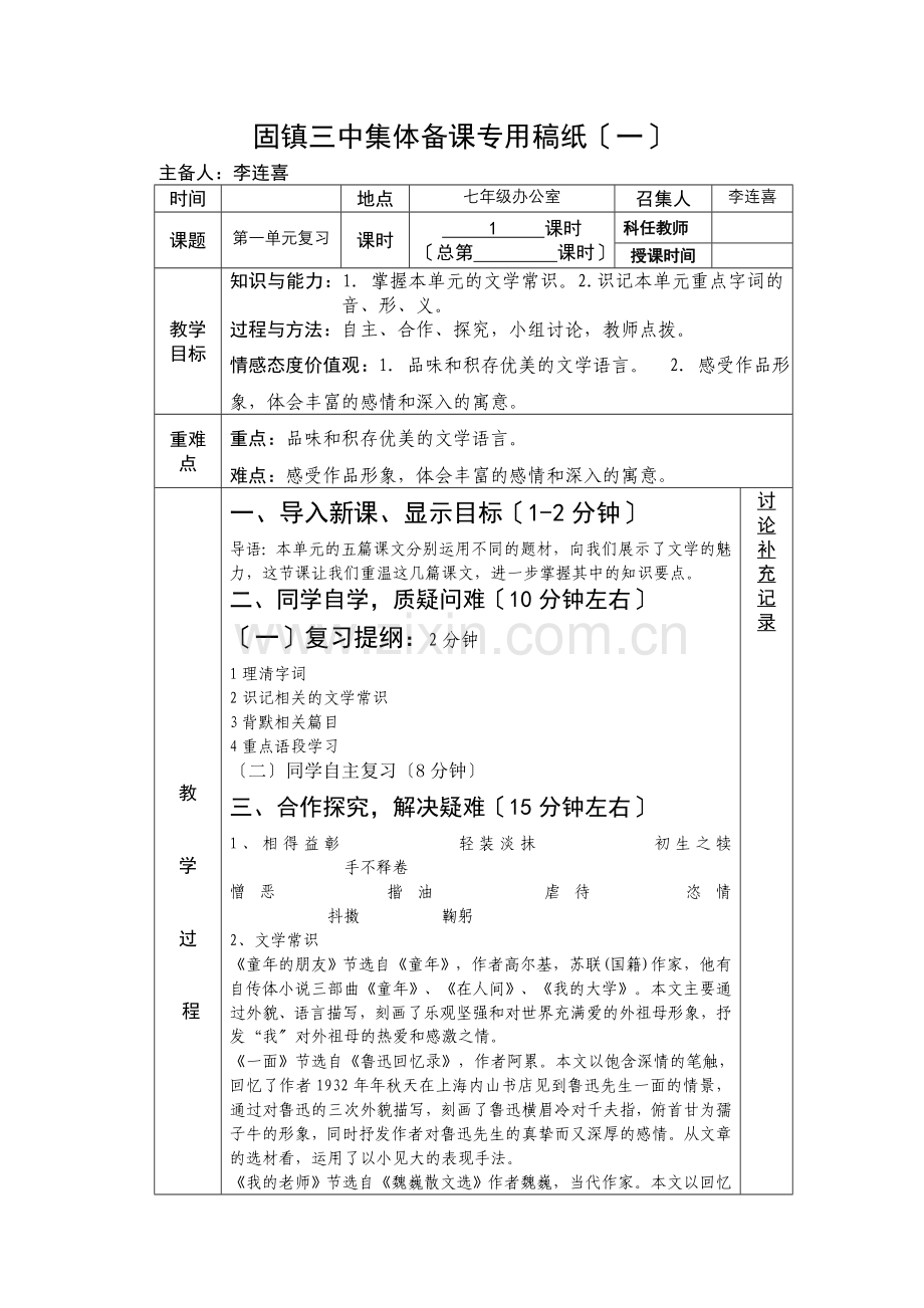 固镇三中集体备课专用稿纸〔一〕