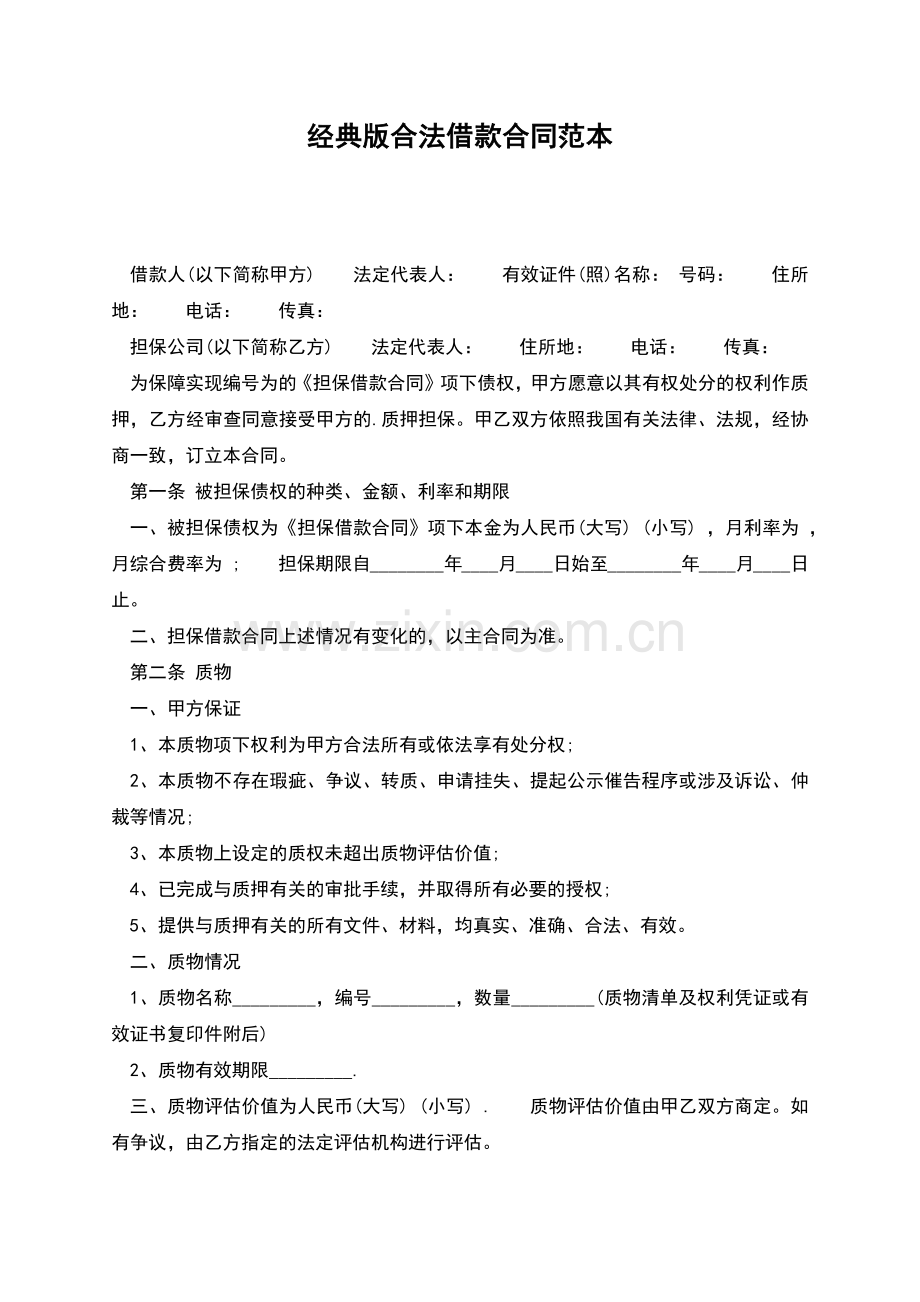 经典版合法借款合同范本