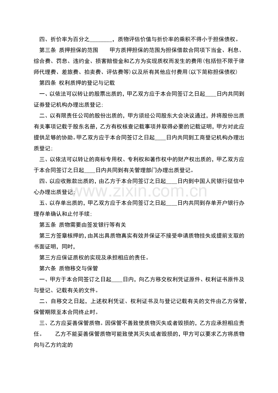 三、由于甲方的原因,致使乙方不能及时实现质权的,甲方应承担债权数额每日千分之_________的违约金。