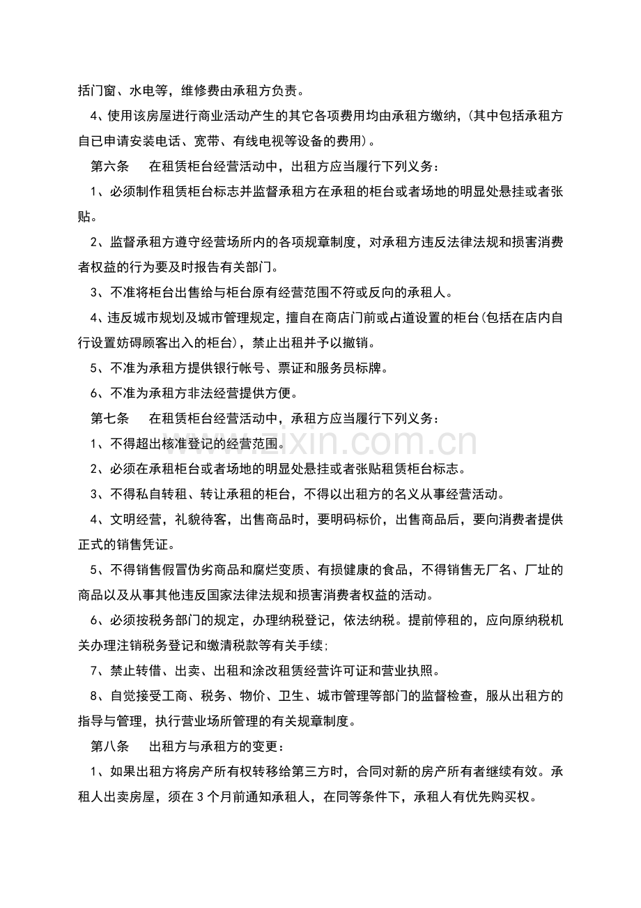 3、不得私自转租、转让承租的柜台,不得以出租方的名义从事经营活动。