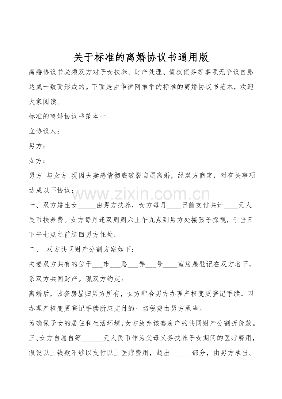 离婚协议书必须双方对子女扶养、财产处理、债权债务等事项无争议自愿达成一致而形成的。下面是由华律网推举的标准的离婚协议书范本,欢迎大家阅读。