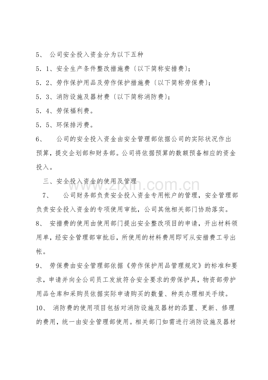 1、 为保证公司安全投入资金合理有效的使用,改善安全生产条件,实现安全生产,特制定本规定。