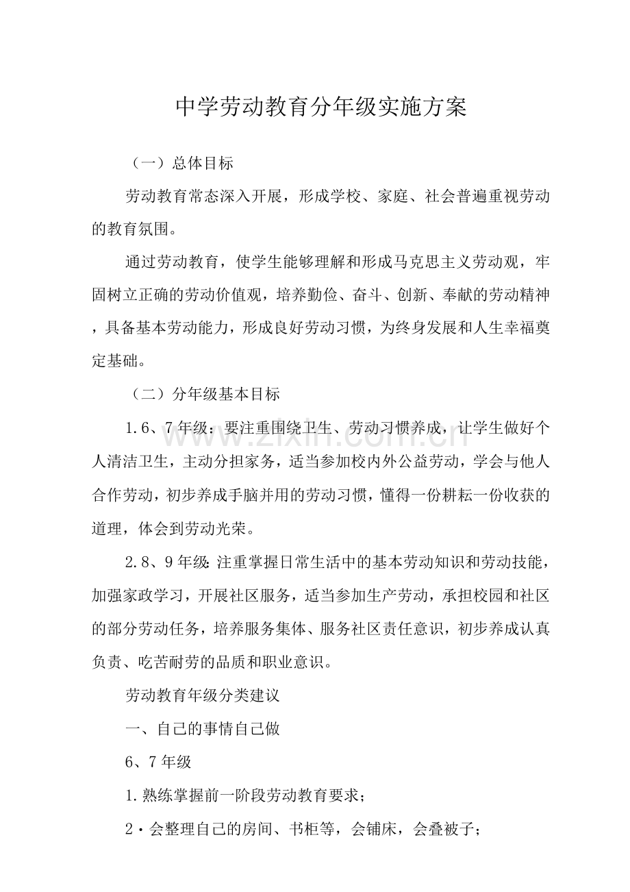 中学劳动教育分年级实施方案