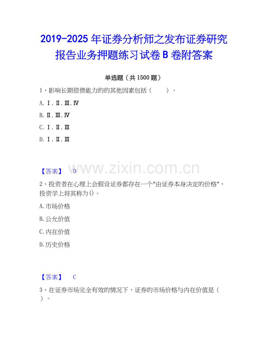 2019-2025年证券分析师之发布证券研究报告业务押题练习试卷B卷附答案