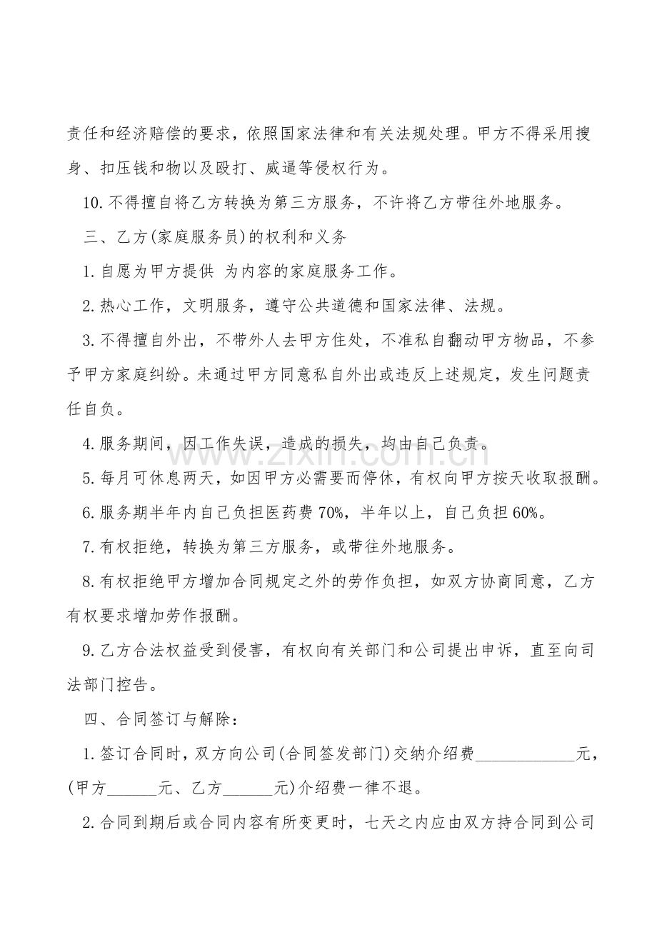 1.有权要求乙方提供 为内容的家庭服务工作。未商得乙方同意,不得增加上述规定以外的劳务负担。