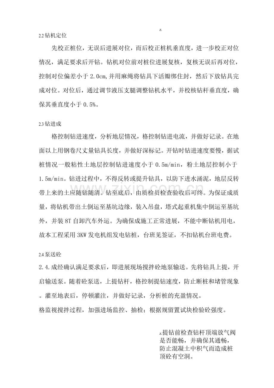 z.提钻前检查钻杆顶端放气阀是否能畅,并确保其通畅,防止混凝土中积气而造成桩顶砼有空洞。