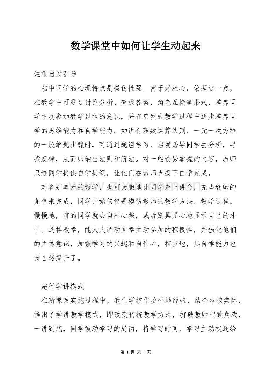 初中同学的心理特点是模仿性强,富于好胜心,依据这一点,在教学中可通过讨论分析、查找答案、角色互换等形式,培养同学主动参加教学过程的意识,并在启发式教学过程中逐步培养同学的思维能力和自学能力。如讲有理数运算法则、一元一次方程的一般解题步骤时,可通过题组学习,启发诱导同学去分析,寻找规律,从而归纳出法则和解法。对一些较易掌握的内容,教师只给同学提供自学提纲,让他们在教师点拨下自学完成。