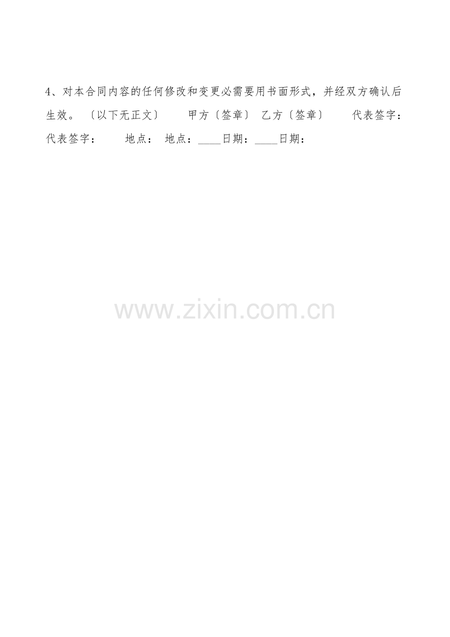 4、对本合同内容的任何修改和变更必需要用书面形式,并经双方确认后生效。 〔以下无正文〕 甲方〔签章〕 乙方〔签章〕 代表签字: 代表签字: 地点: 地点:____日期:____日期: