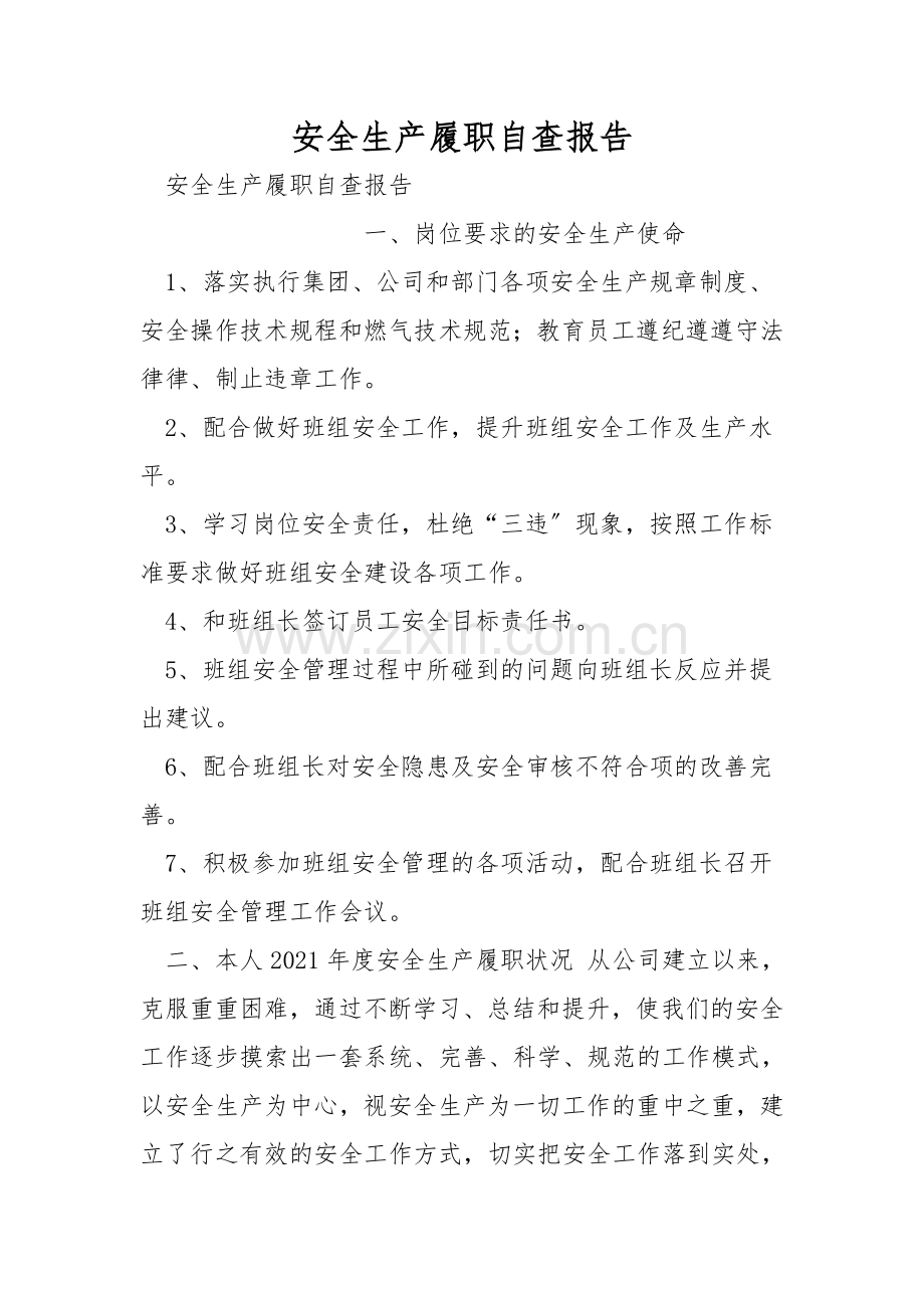《安全生产履职自查报告》全文内容当前网页未完全显示,剩余内容请访问查看。