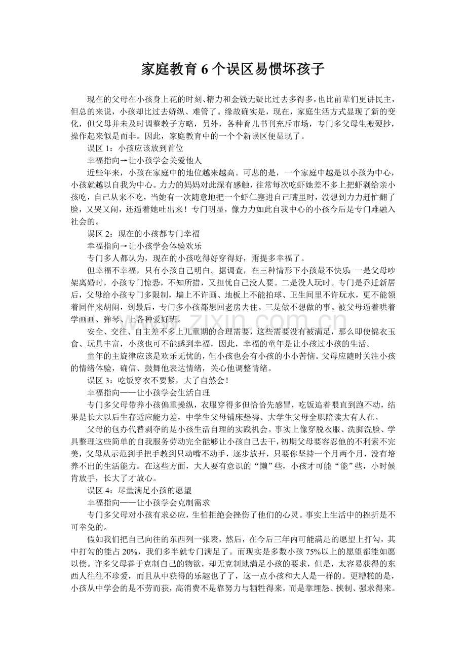 家庭教育6个误区易惯坏孩子