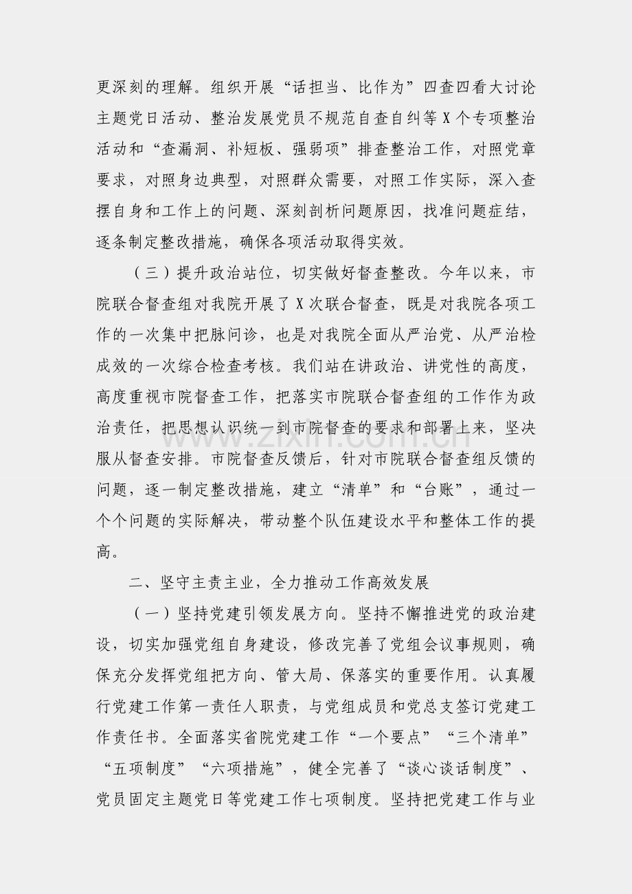 (三)提升政治站位,切实做好督查整改。今年以来,市院联合督查组对我院开展了X次联合督查,既是对我院各项工作的一次集中把脉问诊,也是对我院全面从严治党、从严治检成效的一次综合检查考核。我们站在讲政治、讲党性的高度,高度重视市院督查工作,把落实市院联合督查组的工作作为政治责任,把思想认识统一到市院督查的要求和部署上来,坚决服从督查安排。市院督查反馈后,针对市院联合督查组反馈的问题,逐一制定整改措施,建立“清单”和“台账”,通过一个个问题的实际解决,带动整个队伍建设水平和整体工作的提高。