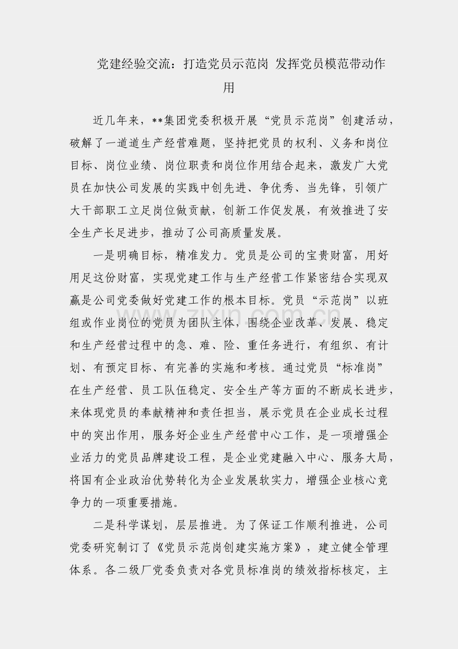 党建经验交流:打造党员示范岗 发挥党员模范带动作用