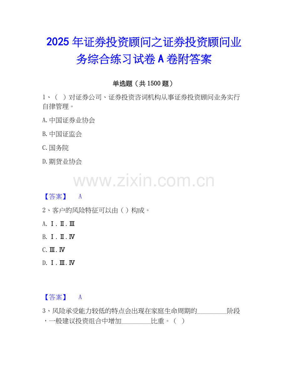 2025年证券投资顾问之证券投资顾问业务综合练习试卷A卷附答案