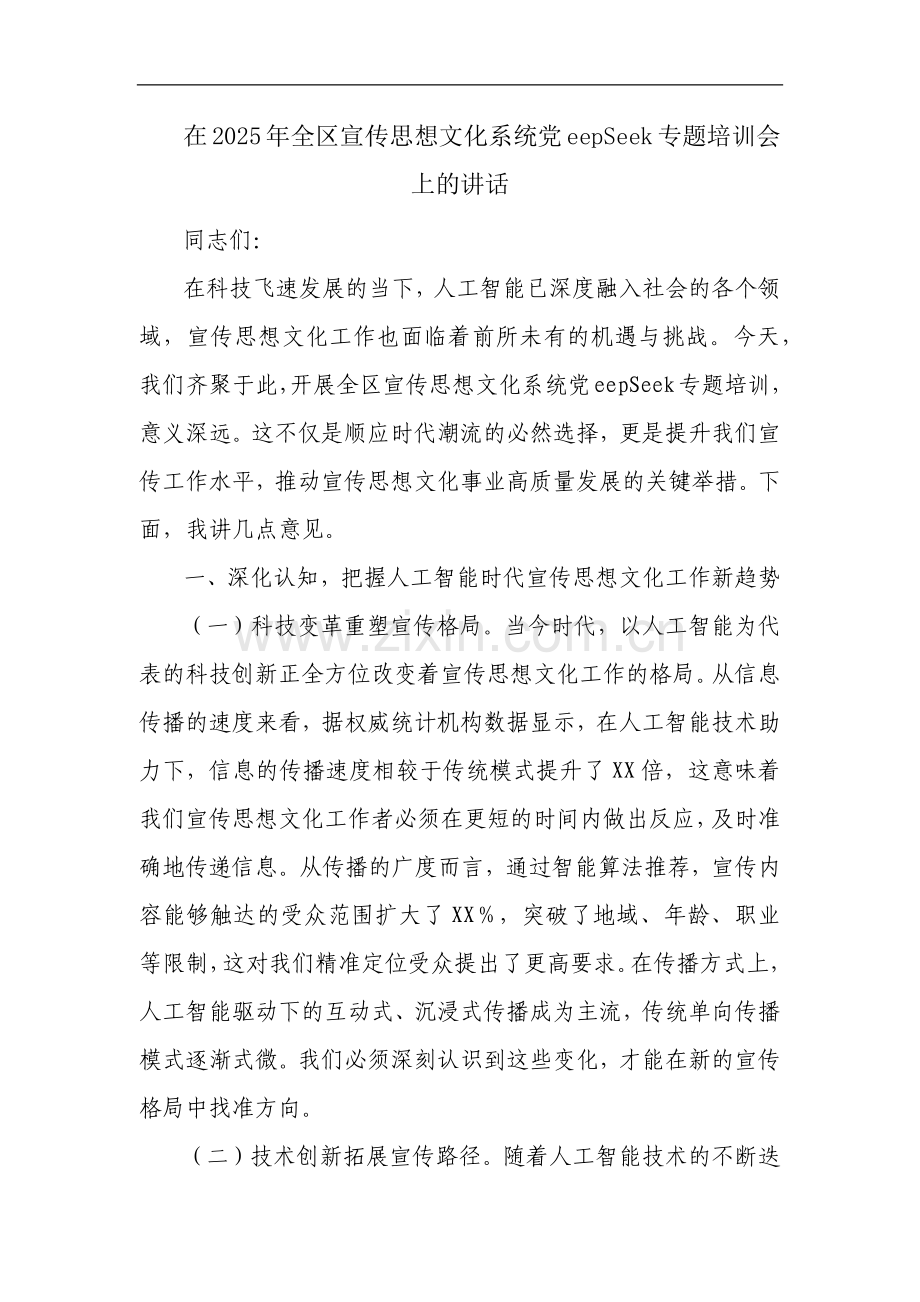 在2025年全区宣传思想文化系统党eepSeek专题培训会上的讲话
