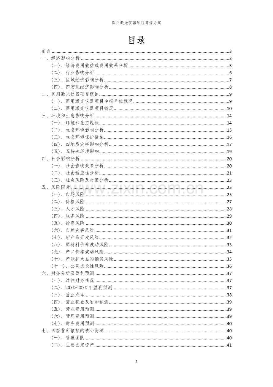 2. 投资经济合理性: 医用激光仪器项目的投资合理,符合国家产业发展政策,市场经济要求。其实施有望为投资者带来经济回报。