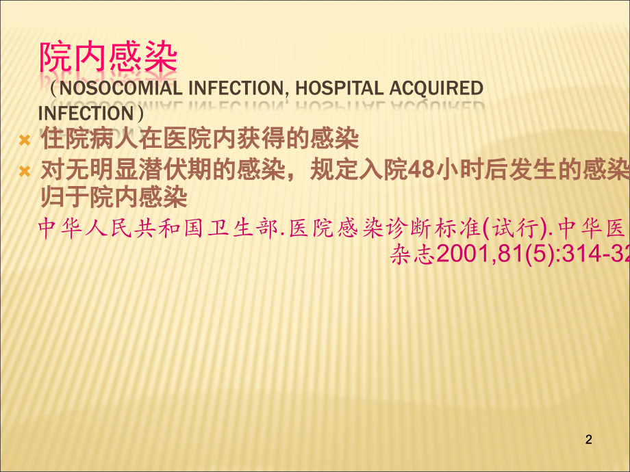 ,单击此处编辑母版文本样式,第二级,第三级,第四级,第五级,*,*,单击此处编辑母版标题样式,1,1,新生儿病房院内感染暴发的识别和控制,2,2,院内感染,(,nosocomial infection,hospital acquired infection,),住院病人在医院内获得的感染,对无明显潜伏期的感染,规定入院,48,小时后发生的感染归于院内感染,中华人民共和国卫生部,.,医院感染诊断标准,(,试行,).,中华医学杂志,2001,81(5):314-320.,医院感染暴发,(outbreak,),在医疗机构或其科室的患者中,短时间内发生,3,例以上同种同源感染病例的现象。,医院感染管理办法,,中华人民共,48,号,,2006,年,1,月,Hospital infection outbreaks occur in cases of significant increase of infections(above the upper endemic limit of the neonatal unit).,Marisa.J Pediatr 2001;77(Supl.1):S81-S96,4,4,新生儿病房及,NICU,院内感染暴发的高发区域,!,自上世纪,80,年代我国,各地相继建立新生儿,病房及,NICU,以来,院,内感染暴发时有报道,我国新生儿院内感染近状,2009,年,3,月天津蓟县,5,名新生儿因院内感染导致死亡,,根据北京儿童医院对,3,名发病患儿血培养检查,均革兰氏阴性菌感染,其中,2,名结果为阴沟肠杆菌。,2011,年,9,月河南省商丘市睢阳区一名,35+2,周早产儿于生后,10,天被通知突发感染,治疗后死亡。人民法院一审判决医院赔偿张某夫妇,11,万多元。,2008,年,8,月,28,日到,9,月,16,日期间,西安交通大学医学院第一附属医院新生儿科收治的新生儿患者中,有,8,名新生儿从,9,月,5,日至,15,日先后死亡。国家卫生部和省卫生厅成立联合调查小组,进驻该院全面调查死亡原因。调查结果,新生儿死亡与院内感染有关。,院内感染损失巨大,中国内地医院院内感染发生率约为,8%,,每例院内感染患者平均住院时间延长,14,天,花费增加,6542,元人民币,全国每年因医院感染造成的直接损失超过,150,亿元人民币。,美国约,有,5%,的患者发生医院获得性感染,(Hospital Infection,HI),,相当于每年,200,万人罹患,医疗费用增加,45,亿美元,延长住院日,8,676,000,天,增加患者病死率,直接导致,19000,名患者死亡,间接引起,58000,名患者死亡,在美国人口死亡原因中排列第,11,位。新生儿免疫力低下,为医院感染的高危人群,在美国,新生儿医院感染率约为,5%-15%,。,新生儿医院内感染发病率较高,国内报道高达,6%-16.1%,。,新生儿院内感染的高危因素,自身免疫功能低下,长期应用广谱抗生素,住院时间长,医源性交叉感染多,皮肤粘膜屏障功能差,皮肤:结构和功能不成熟,胚胎,26,周前,角质层未完全发育,早产儿出生,2,周后皮,肤的结构和功能才与足月儿相近。,粘膜:胃肠道粘膜通透性大,胃酸和胆,酸少,正常菌群未完全建立。,脐带:天然的窗口,新生儿院内感染的高危因素,免疫功能低下,新生儿皮肤的屏障功能脆弱,皮肤中含水量较多,,pH,值较高,有,利于病原菌的生长。,诊疗护理中易损伤皮肤,,皮肤完整性受损,皮肤屏障功能受到破坏。,皮肤屏障功能差,新生儿院内感染的高危因素,免疫功能低下,血清免疫球蛋白水平低下,IgG,:唯一能通过胎盘的免疫球蛋白,足月儿母体水平(超过,5,10,),早产儿、,SGA,和过期儿,母体,(,胎盘功能不全,),剖腹产儿母体,阴道分娩儿母体,(子宫和产道的挤压),T1/2,约为,21,天,生后血清水平迅速下降。,生后,6,个月开始大量合成,,5,6,岁后达成人水平,新生儿院内感染的高危因素,免疫功能低下,血清免疫球蛋白水平低下,IgA,:不能通过胎盘,脐血测出,IgA,提示宫内感染,生后,2,周,体内出现,IgA,6,7,岁达成人水平,分泌型,IgA,(,S-IgA):,主要局部产生,仅,10,来自血清,缺乏易患呼吸道和肠道感染,新生儿院内感染的高危因素,免疫功能低下,血清免疫球蛋白水平低下,IgM,:不通过胎盘,脐血测出,IgM,可诊断宫内感染,生后,1,周血清含量骤然增高,是体内最早合成,的一种免疫球蛋白,生后最初几个月内机体主要合成的免疫球蛋白,缺乏易发生,G,-,菌的感染,新生儿院内感染的高危因素,免疫功能低下,有研究报道新生儿病房抗生素的使用率达,100%,。广谱抗生素使用的剂量大、疗程长,引起正常菌群紊乱、细菌变异、耐药菌株增长而导致院内感染。,新生儿院内感染的高危因素,长期应用广谱抗生素,14,14,-,滥用抗菌药:,(,1,)造成大量耐药菌株院内感染,(,2,)真菌感染,(,二重感染,),:碳青酶烯类,新生儿院内感染的高危因素,新生儿院内感染的高危因素,住院时间长,侵入性操作增加,医务人员操作不规范,病房空气污染,新生儿院内感染的高危因素,医院性交叉感染多,新生儿院内感染的高危因素,医源性交叉感染,侵入性操作增加,气管插管呼吸机辅助呼吸,胃肠外营养应用、各种留置通路等增加,了皮肤、粘膜损伤,容易造成软组织的,感染。,治疗器械消毒灭菌不严格导致感染,医务人员操作不规范,对洗手及手的清洁消毒重视不够,对喂奶用具的清洁消毒、配奶卫生,注意不够,接触患儿的护理用具消毒灭菌不严,新生儿院内感染的高危因素,医源性交叉感染,新生儿院内感染的高危因素,医源性交叉感染,病房空气污染,空气不流通、温度过高、湿度过大都有利于微生物的生长繁殖。,人员流动过多带动气流,使含有致病微生物的尘埃或飞沫小滴随空气流动飞扬,造成空气污染。,20,20,影响新生儿院感因素,环境因素,-,外源性感染,来源于,院内被感染或定植的工作人员、陪伴、探视者及,其他病儿,被污染的医疗器械、静脉输入的液体、外科敷料及医院,的公共设施,传播途径,以工作人员的,手,最为重要,