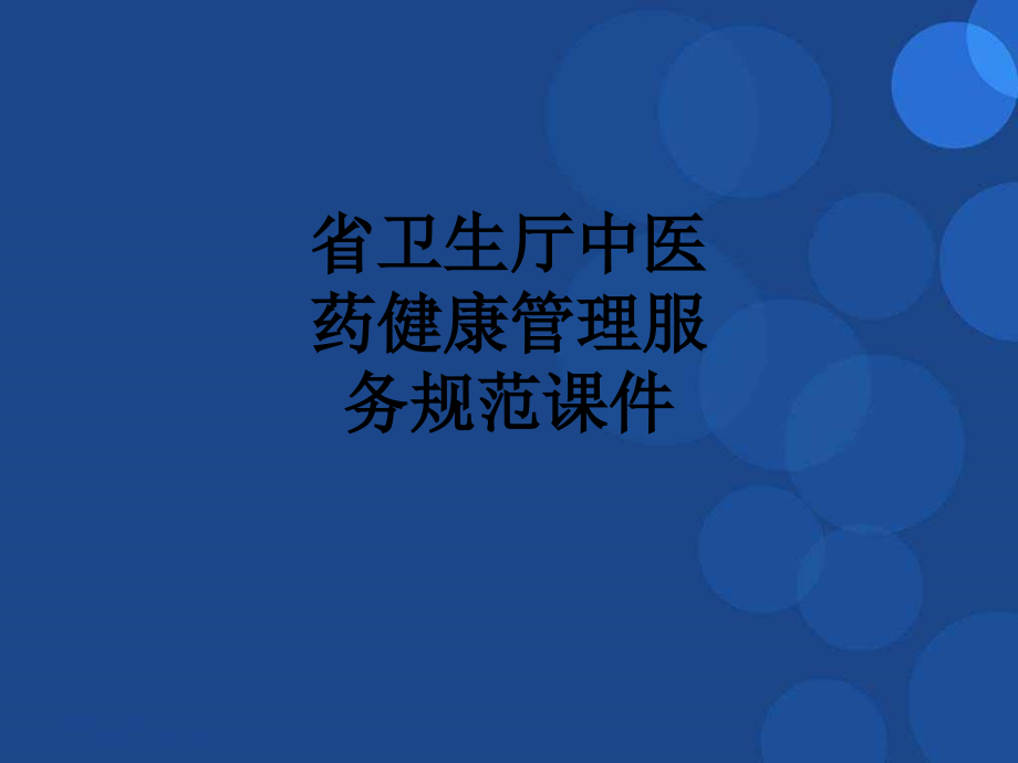 ,单击此处编辑母版标题样式,单击此处编辑母版文本样式,第二级,第三级,第四级,第五级,*,*,单击此处编辑母版标题样式,单击此处编辑母版文本样式,第二级,第三级,第四级,第五级,省卫生厅中医药健康管理服务规范课件,老年人中医药健康管理服务,一、服务对象,二、服务内容,三、服务流程,四、服务要求,五、考核指标,六、老年人中医药健康管理服务记录表,七、体质判定标准表,一、服务对象,辖区内,65,岁及以上常住居民。,据卫生统计年报,,2012,年我省常住人口中,,65,岁以上老人约,677,万。,2012,年各市,65,岁以上老年人基数,数据来源:,2013,年,1,月卫生监测数据,(人),4,二、服务内容,每年为老年人提供,1,次中医药健康管理服务,内容包括中医体质辨识和中医药保健指导。,(一)中医体质辨识,按照老年人体质辨识服务记录表采集信息,根据体质判定标准进行体质辨识,并将辨识结果告知服务对象。,据中华中医药学会,中医体质分类与判定,2009,版,中医体质辨识是以人的体质为认知对象,从体质状态及不同体质分类的特性,把握人体健康与疾病的整体要素与个体差异的手段;从而制定防治原则,选择相应的治疗、预防、养生方法,进行“因人制宜”的干预。,(二)中医药保健指导,根据不同体质从情志调摄、饮食调养、起居调摄、运动保健、穴位保健等方面进行相应的中医药保健指导。,三、服务流程,预约辖区内,65,岁及以上常住居民,根据中医体质辨识服务记录表所列问题采集信息进行评分,根据体质判定,标准,进行,体质辨识,偏颇体质,平和体质,进行有针对,性的中医药,保健指导:,情志调摄,饮食调养,起居调摄,运动保健,穴位保健,三、服务流程,(一)开展老年人中医药健康管理服务可结合老年人健康体检和慢病管理及日常诊疗时间。,(二)开展老年人中医药健康管理服务的乡镇卫生院、村卫生室和社区卫生服务中心(站)应当具备相应的设备和条件。,有条件的地区应利用信息化手段开展老年人中医药健康管理服务。,四、服务要求,四、服务要求,(三)开展老年人中医体质辨识工作的人员应当为接受过老年人中医药知识和技能培训的卫生技术人员。,开展老年人中医药保健指导工作的人员应当为中医类别执业(助理)医师或接受过中医药知识和技能专门培训能够提供上述服务的其他类别医师(含乡村医生),四、服务要求,(四)服务机构要加强与村(居)委会、派出所等相关部门的联系,掌握辖区内老年人口信息变化。,(五)服务机构要加强宣传,告知服务内容,使更多的老年人愿意接受服务。,(六)每次服务后要及时、完整记录相关信息,纳入老年人健康档案。,五、考核指标,(一)老年人中医药健康管理服务率,接受中医药健康管理服务,65,岁及以上居民人数,/,年内辖区内,65,岁及以上常住居民数,100,。,(二)老年人中医药健康管理服务记录表完整率,抽查填写完整的中医药健康管理服务记录表,/,抽查的中医药健康管理服务记录表,100,。,六、老年人中医药健康管理服务记录表,请根据近一年的体验和感觉,回答以下问题。,没,有,(,根本不,/,从来没有,),很,少,(,有一点,/,偶尔,),有,时,(,有些,/,少数时间,),经,常,(,相当,/,多数时间,),总,是,(,非常,/,每天,),(1),您精力充沛吗?(指精神头足,乐于做事),1,2,3,4,5,(2),您容易疲乏吗?(指体力如何,是否稍微活动一下或做一点家务劳动就感到累),1,2,3,4,5,(3),您容易气短,呼吸短促,接不上气吗?,1,2,3,4,5,(4),您说话声音低弱无力吗,?,(指说话没有力气),1,2,3,4,5,(5),您感到闷闷不乐、情绪低沉吗,?,(指心情不愉快,情绪低落),1,2,3,4,5,(6),您容易精神紧张、焦虑不安吗,?,(指遇事是否心情紧张),1,2,3,4,5,(7),您因为生活状态改变而感到孤独、失落吗?,1,2,3,4,5,(8),您容易感到害怕或受到惊吓吗,?,1,2,3,4,5,(9),您感到身体超重不轻松吗,?(,感觉身体沉重,)BMI,指数,=,体重(,kg,),/,身高,2,(,m,),1,(BMI,24),2,(24BMI,25),3,(25BMI,26),4,(,26BMI,28,),5,(BMI28),(10),您眼睛干涩吗,?,1,2,3,4,5,(11),您手脚发凉吗,?,(不包含周围温度低或穿的少导致的手脚发冷),1,2,3,4,5,(12),您胃脘部、背部或腰膝部怕冷吗?(指上腹部、背部、腰部或膝关节等,有一处或多处怕冷),1,2,3,4,5,姓名:编号:,六、老年人中医药健康管理服务记录表,(13),您比一般人耐受不了寒冷吗?(指比别人容易害怕冬天或是夏天的冷空调、电扇等),1,2,3,4,5,(14),您容易患感冒吗,?,(指每年感冒的次数),1,一年,2,次,2,一年感冒,2-4,次,3,一年感冒,5-6,次,4,一年,8,次以上,5,几乎每月都感冒,(15),您没有感冒时也会鼻塞、流鼻涕吗,?,1,2,3,4,5,(16),您有口粘口腻,或睡眠打鼾吗?,1,2,3,4,5,(17),您容易过敏,(,对药物、食物、气味、花粉或在季节交替、气候变化时,),吗,?,1,从来没有,2,一年,1,、,2,次,3,一年,3,、,4,次,4,一年,5,、,6,次,5,每次遇到上述原因都过敏,(18),您的皮肤容易起荨麻疹吗,?(,包括风团、风疹块、风疙瘩,),1,2,3,4,5,(19),您的皮肤在不知不觉中会出现青紫瘀斑、皮下出血吗,?,(指皮肤在没有外伤的情况下出现青一块紫一块的情况),1,2,3,4,5,(20),您的皮肤一抓就红,并出现抓痕吗,?,(指被指甲或钝物划过后皮肤的反应),1,2,3,4,5,(21),您皮肤或口唇干吗,?,1,2,3,4,5,(22),您有肢体麻木或固定部位疼痛的感觉吗?,1,2,3,4,5,(23),您面部或鼻部有油腻感或者油亮发光吗,?,(指脸上或鼻子),1,2,3,4,5,(24),您面色或目眶晦黯,或出现褐色斑块,/,斑点吗,?,1,2,3,4,5,(25),您有皮肤湿疹、疮疖吗?,1,2,3,4,5,(26),您感到口干