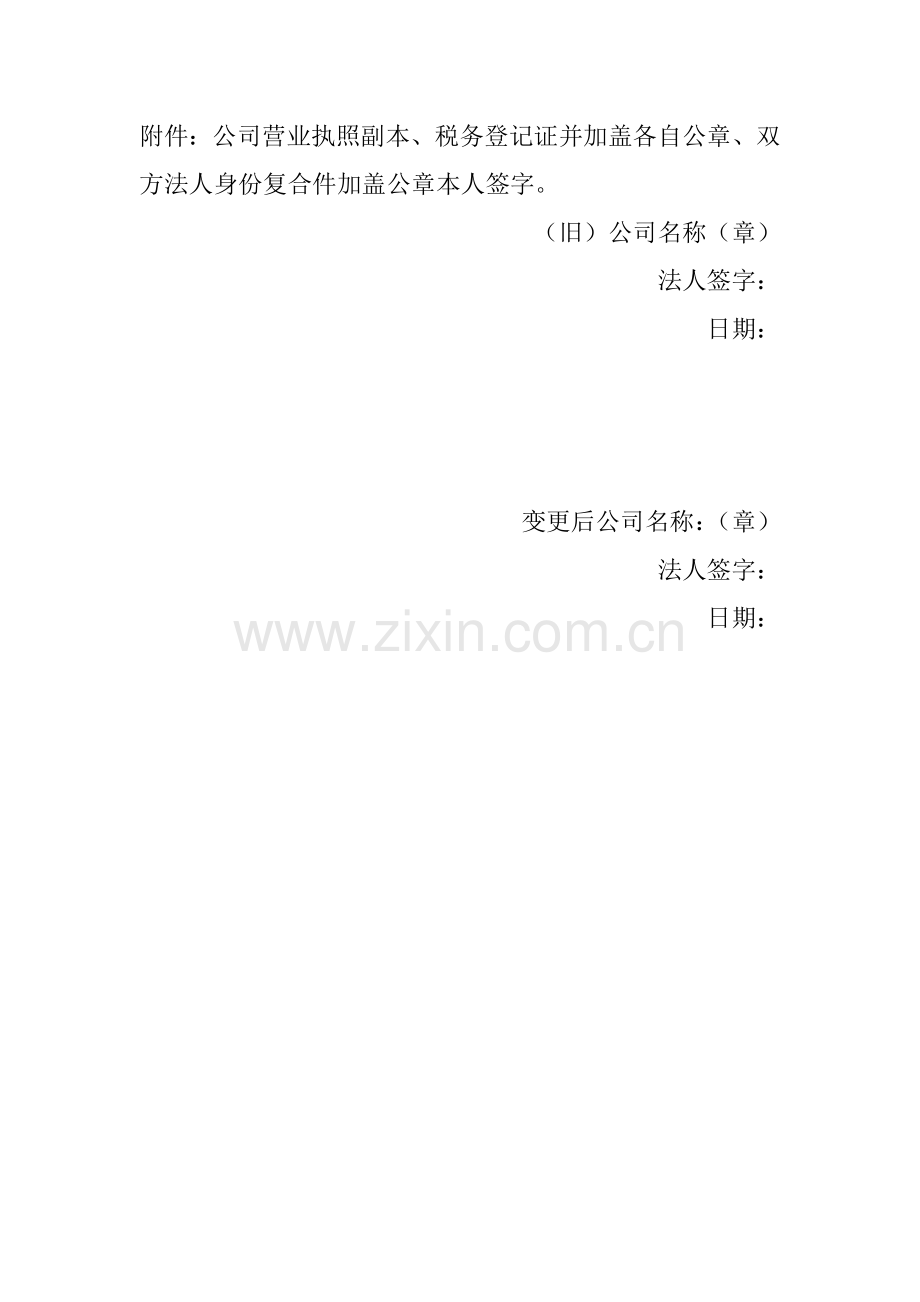 我公司已于 年 月 日接到********(旧)公司发来的《合同主体变更通知书》,经我公司研究后,同意 ********(旧)与我公司于 年 月 日签订的《周转材料租赁合同》项下*********(旧)的全部权利义务于 年 月 日起转至*********(新)公司。 我公司将继续履行该合同,并同意与贵公司直接履行该合同,相关款项我公司将与贵公司直接办理结算。