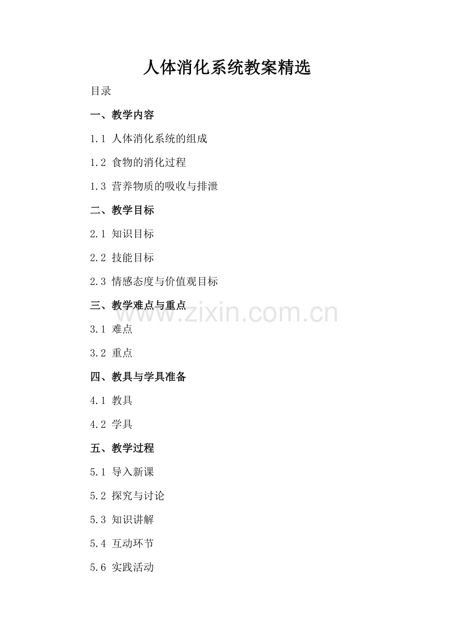 教案如下:教师利用人体消化系统模型,讲解消化系统的组成和食物的消化过程。