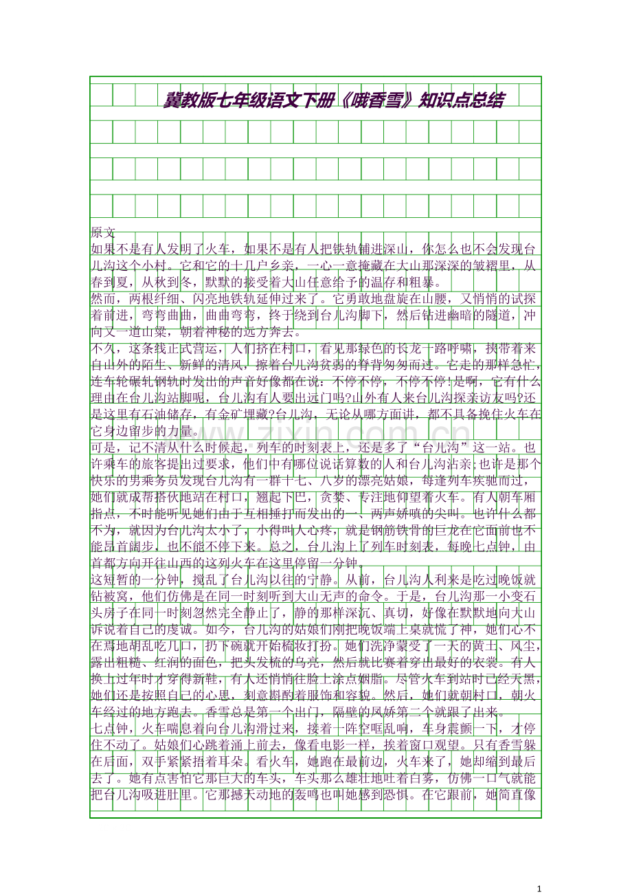 列车无情地载着香雪一路飞奔,台儿沟刹那间就被抛在后面了。下一站叫西山口,西山口离台儿沟三十里。