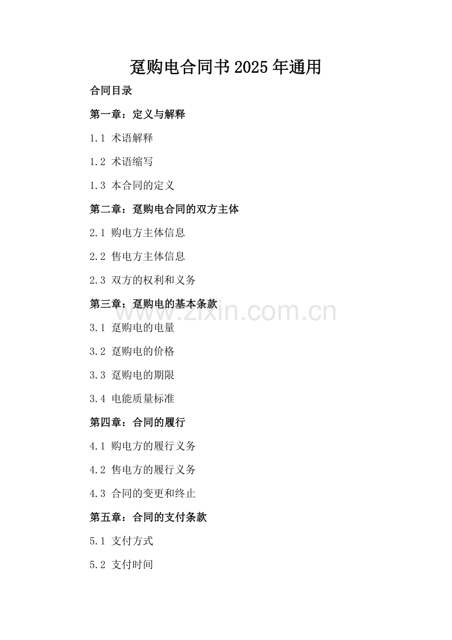 趸购电合同书2025年通用