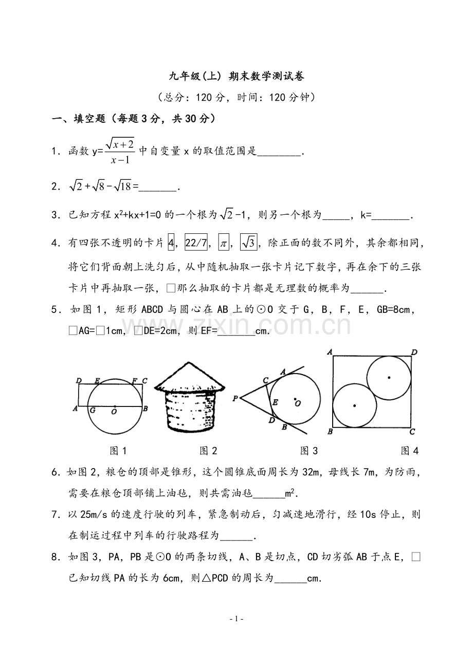 6.如图2,粮仓的顶部是锥形,这个圆锥底面周长为32m,母线长7m,为防雨,需要在粮仓顶部铺上油毡,则共需油毡______m2.