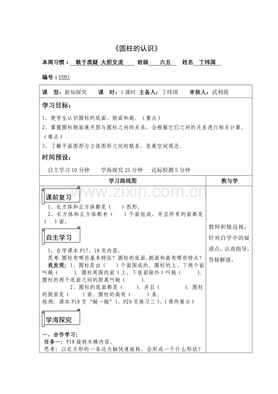 课 型:新知探究 课 时:1课时 主备人:丁纬国 审核人:武利霞
