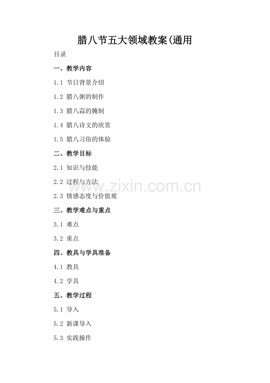 1. 腊八节五大领域教案(通用)