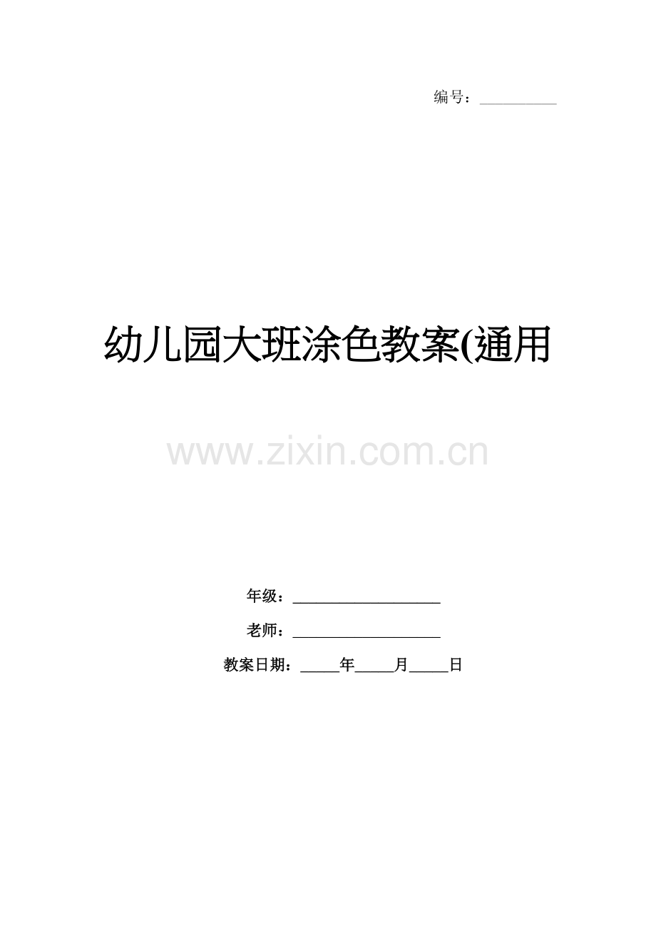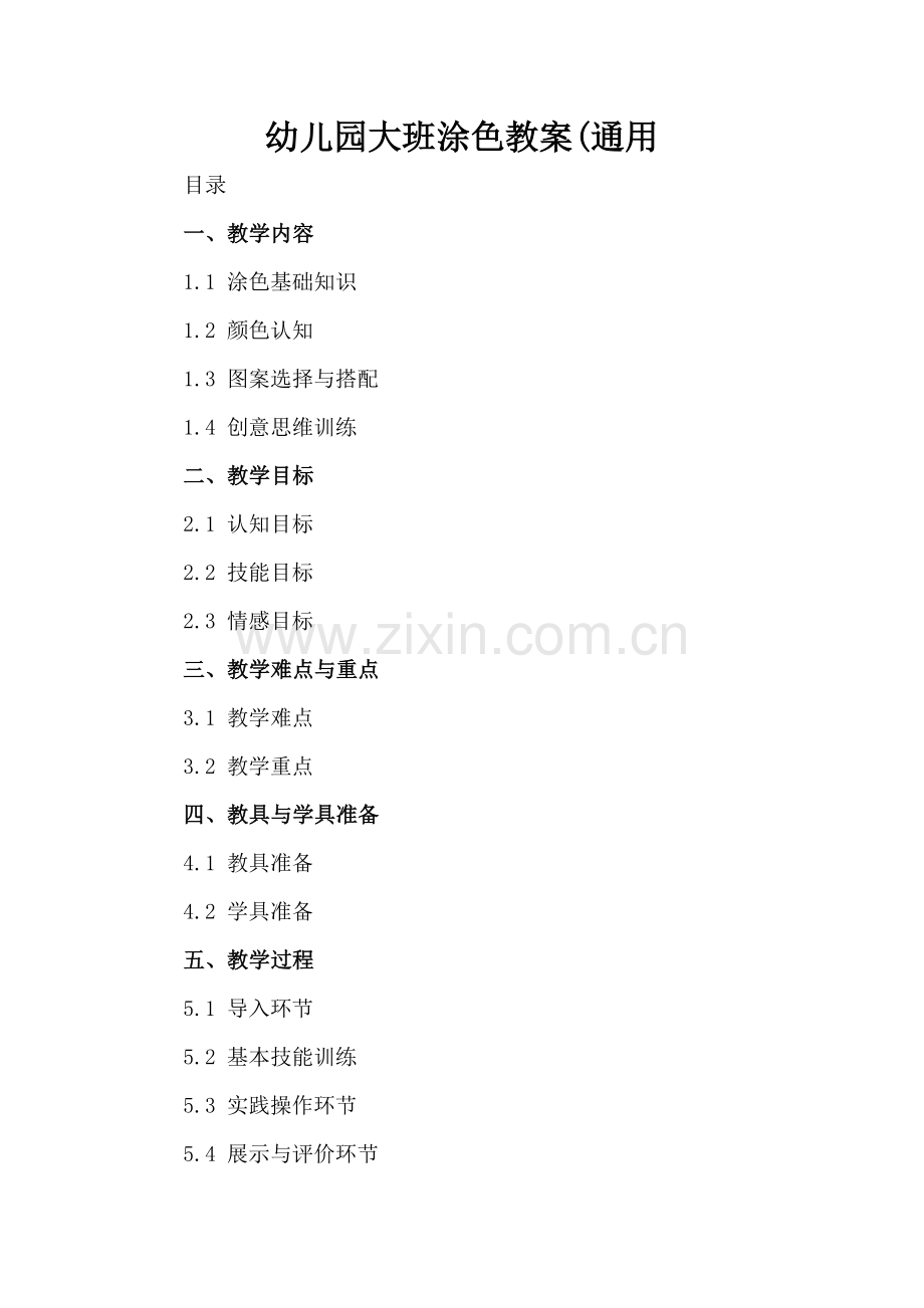 1. 教案课件主题:幼儿园大班涂色教案(通用)