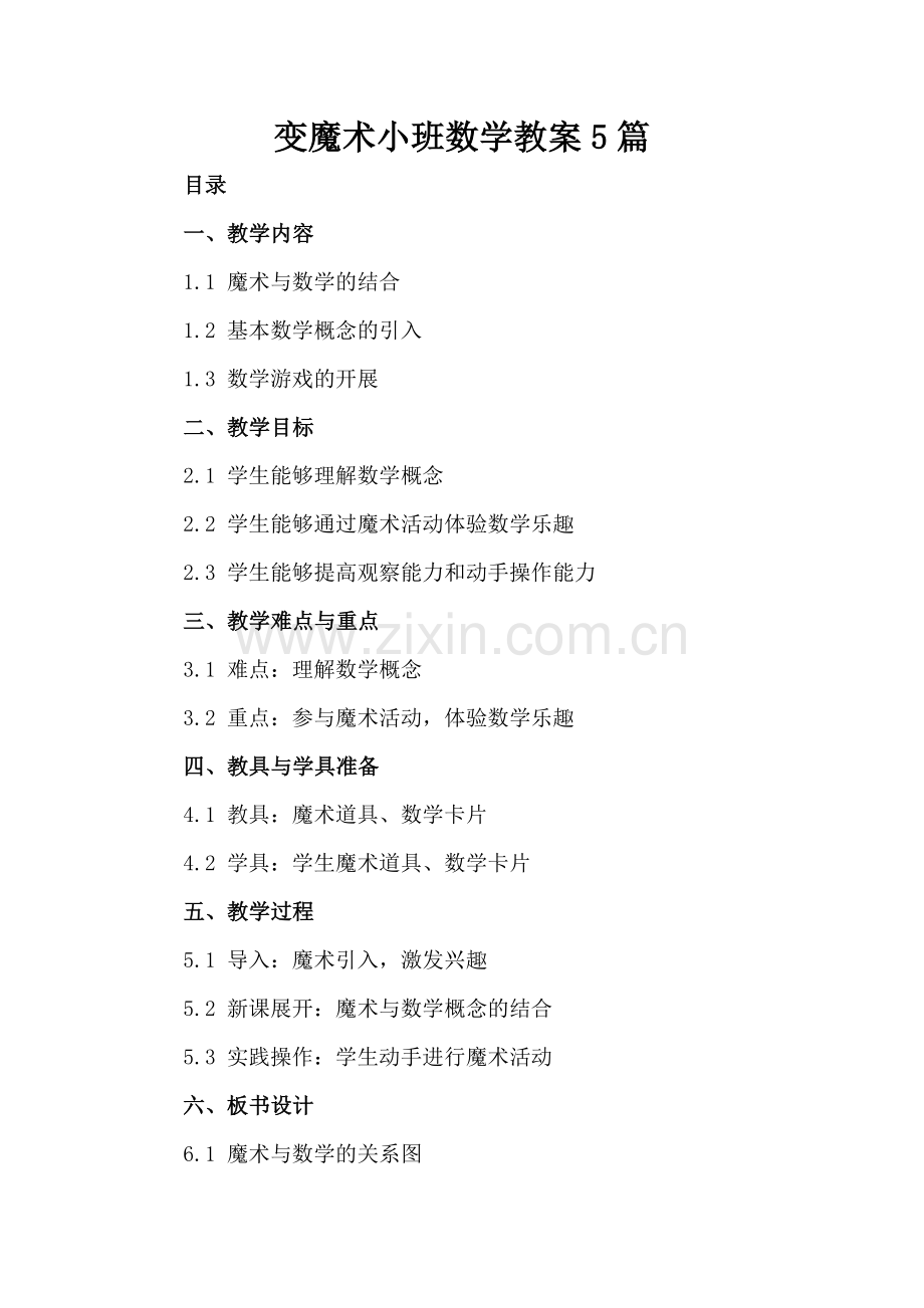 变魔术小班数学教案5篇