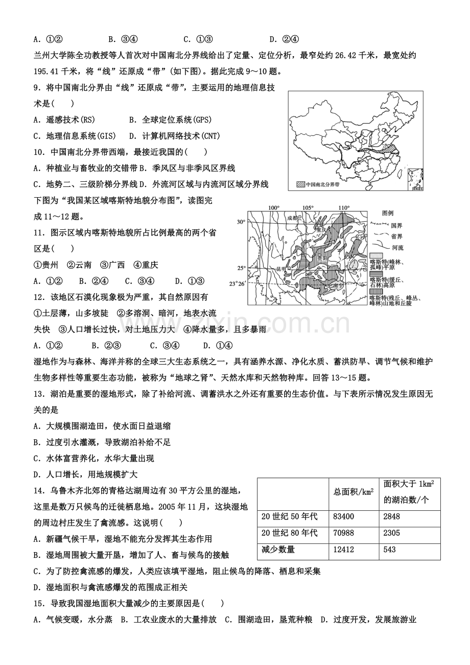 9.C【解析】 南北分界带的确定,要综合分析多个自然要素,必然要运用地理信息系统进行合成分析。