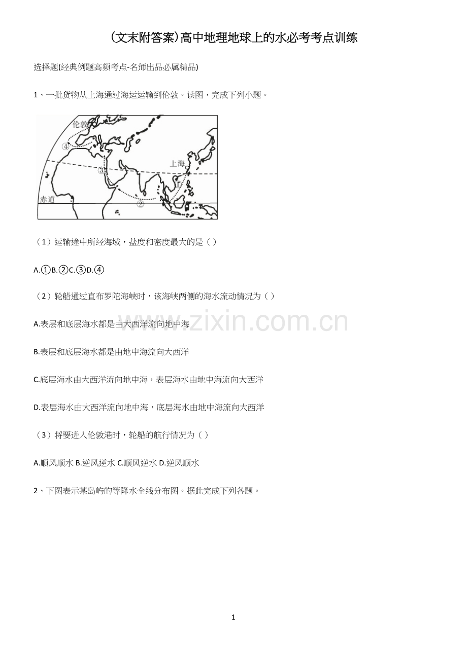 (文末附答案)高中地理地球上的水_00B参考答案